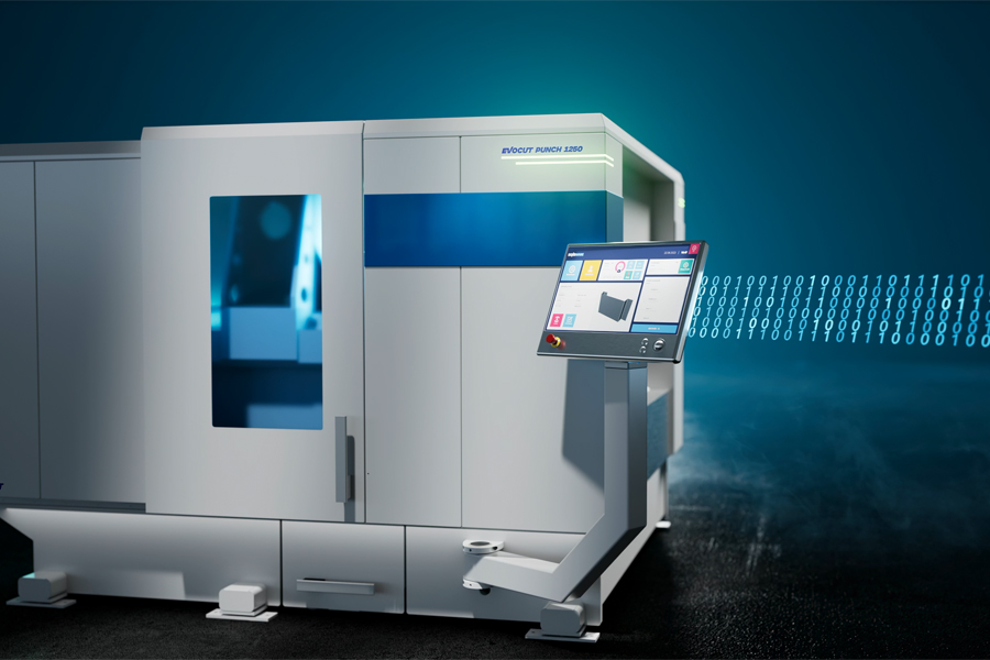 Funkcja wykrawania w maszynie EVOCUT umożliwia wykonywanie dowolnych promieni, cięć ukośnych, a także niestandardowego otworowania w blasze – bez ograniczeń co do jej szerokości.